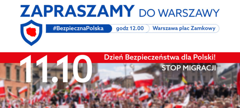 11 października — Dzień Bezpieczeństwa dla Polski! Warszawa, Plac Zamkowy, godz. 12:00 Czas powiedzieć: DOŚĆ! Weźmy sprawy w swoje ręce i powiedzmy głośno: NIE dla nielegalnych migrantów! Wzywamy wszystkie siły...