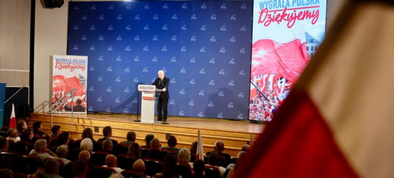 Prezes PiS J. Kaczyński: Dziękuję wszystkim, którzy zaangażowali się w tę wielką bitwę. Wszyscy, którzy uczestniczyli w zbiórkach środków, w spotkaniach i wiecach, w zbieraniu podpisów, w pilnowaniu wyborów –...