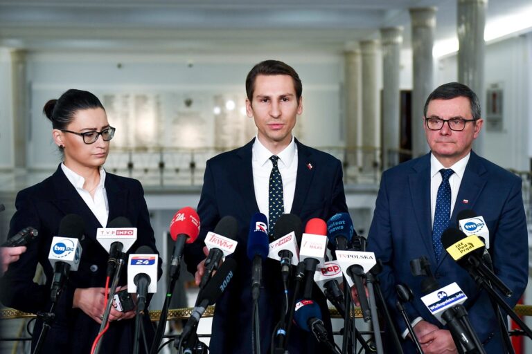 Konferencja prasowa K. Płażyńskiego, M. Golińskiej i J. Polaczka (18.01.2024)