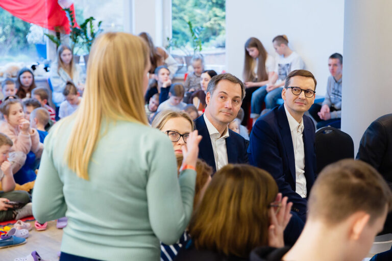 Spotkanie Premiera M. Morawieckiego i Premiera Belgii z uchodźcami z Ukrainy w Serocku (11.04.2022)
